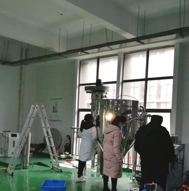 實(shí)驗(yàn)分別采用離心霧化和雙流體霧化分別進(jìn)行實(shí)驗(yàn)測試,通過實(shí)驗(yàn)結(jié)果表明,我司設(shè)備實(shí)驗(yàn)收料更加明顯,也沒有堵塞現(xiàn)象發(fā)生,收集率達(dá)到70%以上,優(yōu)于用戶在其他廠家機(jī)器上的實(shí)驗(yàn)結(jié)果,收到良好的評價。 本次實(shí)驗(yàn)由我司技術(shù)人員全程為用戶講解,得到用戶的認(rèn)可。期間,我司工作人員與用戶還進(jìn)行了針對這次實(shí)驗(yàn)的討論會,用戶表示進(jìn)入實(shí)際性的生產(chǎn)階段設(shè)備的籌劃和設(shè)計。